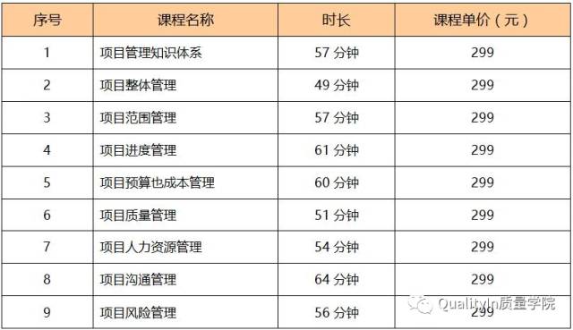 3、活动时间结束后,将从周末所有订单中随机抽取3名幸运学员,每人将免费获得一门任选QualityIn质量学院在线点播课程,最高价值949元;